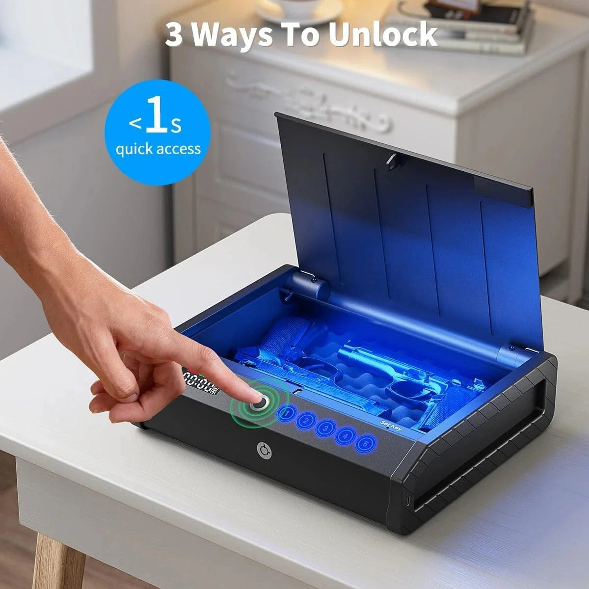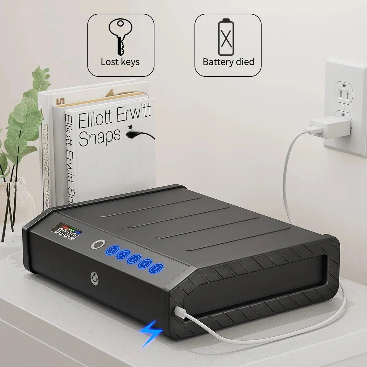 - Emergency USB Power: The fingerprint recognition gun safe for handgun includes a built in emergency USB C power supply incase the battery failure or keys missing, unlock it with fingerprints or password. It will not charge the batteries, this feature is only used as temporary power when the batteries are depleted.